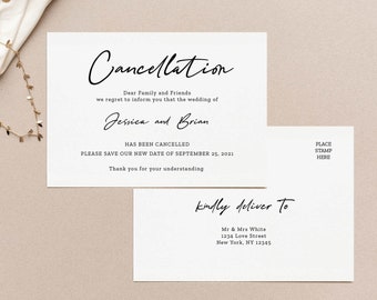 Dear Vendor name This message is to notify you that I am cancelingpostponing my wedding on MMDDYYYY due to concerns about coronavirus. Wedding Cancellation Announcement Postcard Change of Plans Change the Date Resave the Date Postponed Wedding Simple Editable Download.